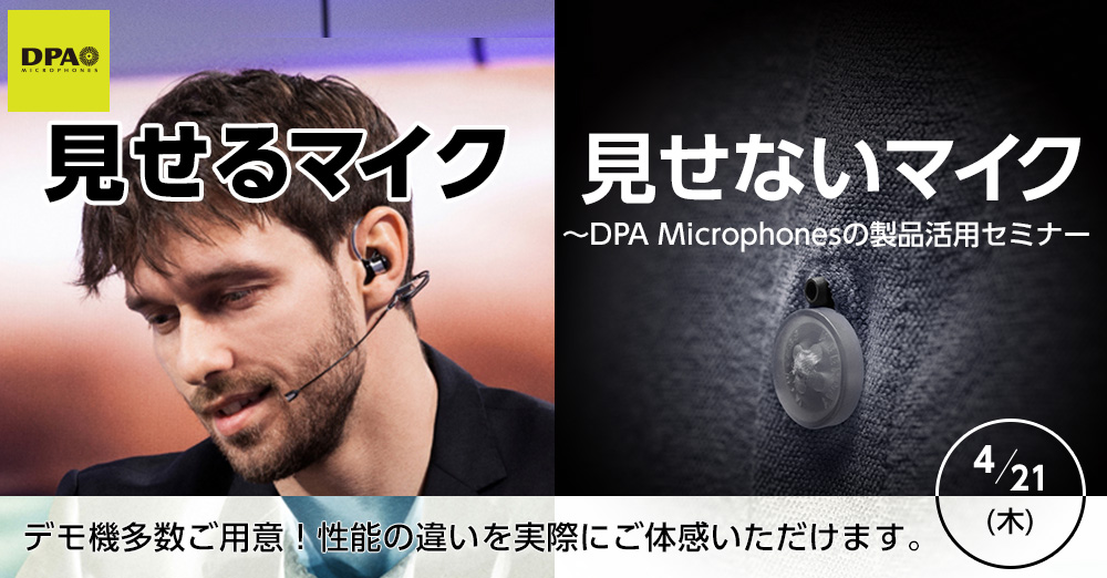 ホーム > セミナー・イベント情報 > 過去に開催されたセミナー・イベント概要一覧 > 見せるマイク、見せないマイク ~DPA Microphonesの製品活用セミナー 4/21開催!