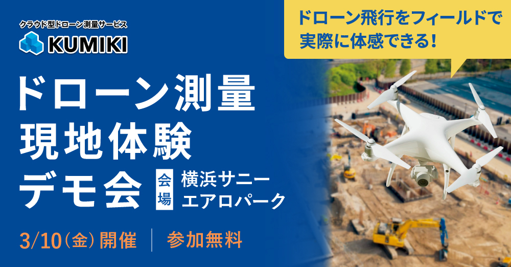 ドローン飛行を実際に体感でき、ドローン測量サービス「くみき」の使い方をイチから学ぶことができます。