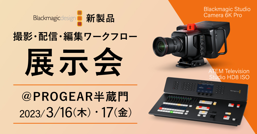 ホーム > セミナー・イベント情報 > 過去に開催されたセミナー・イベント概要一覧 > Blackmagic Design新製品 遂にPROGEAR半蔵門に襲来!~撮影・配信・編集ワークフロー展示会~