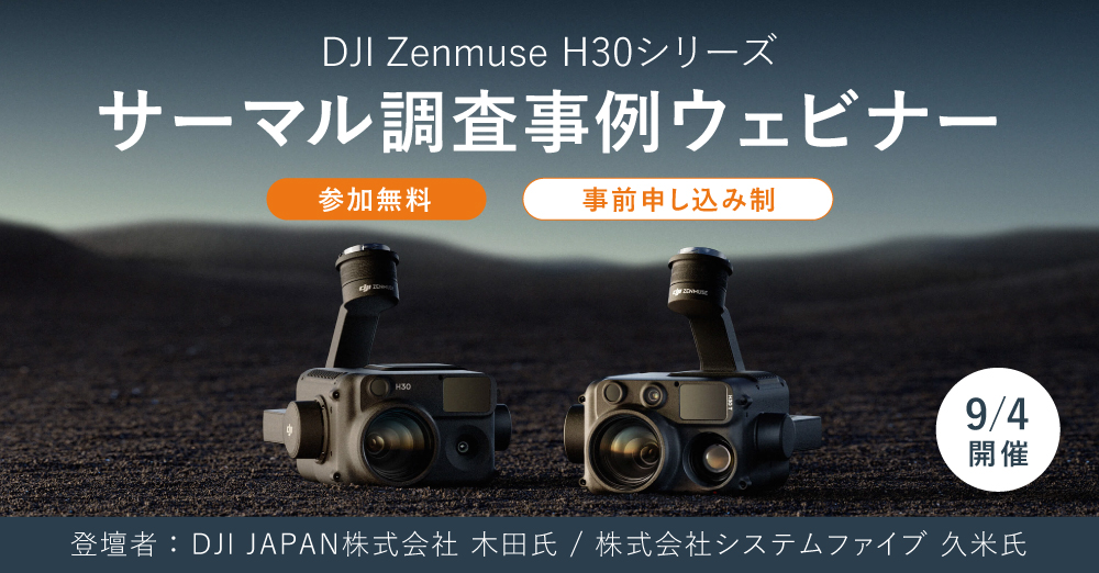 「DJI Zenmuse H30シリーズ サーマル調査事例」に関するウェビナーを開催いたします。