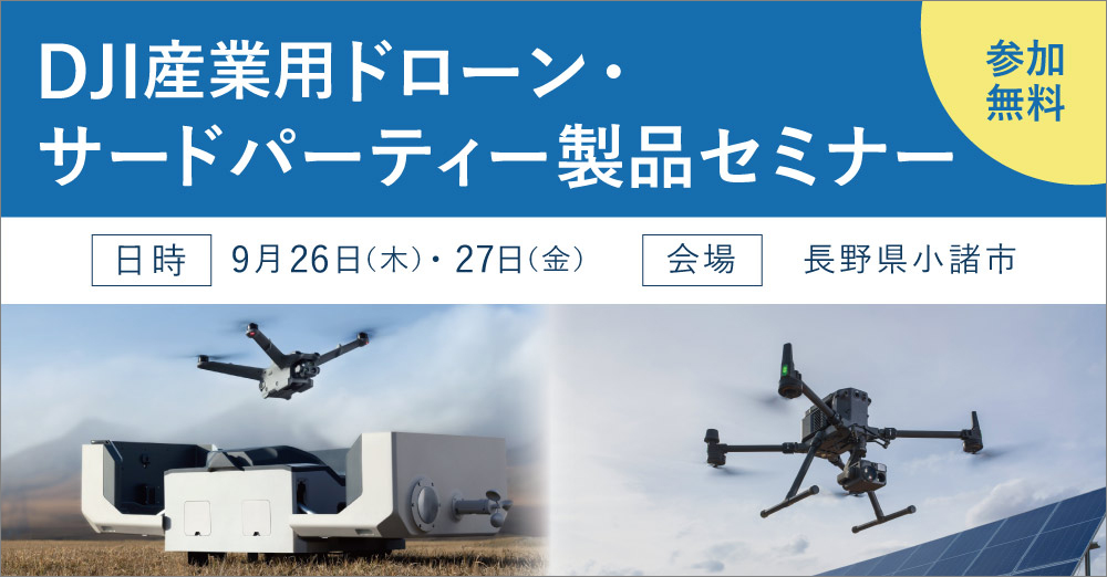 ホーム > セミナー・イベント情報 > 過去に開催されたセミナー・イベント概要一覧 > 【9/26・27開催】DJI産業用ドローン・サードパーティー製品セミナー in 長野