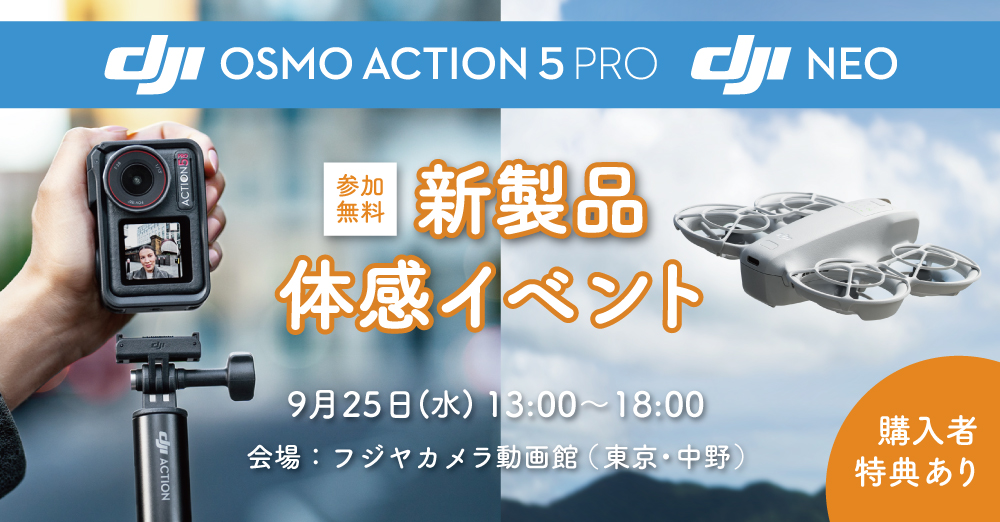 DJIより9月に発売された新製品、DJI Osmo Action 5 Pro と DJI Neoを東京・中野のフジヤカメラ店 動画館にて実際に触っていただけます!