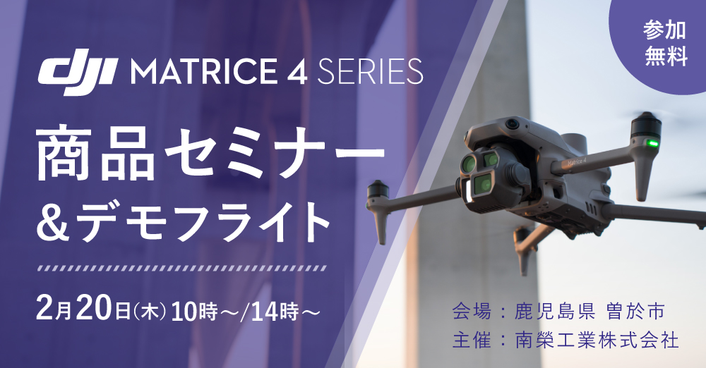 南榮工業株式会社主催 DJIの最新産業機「DJI Matrice 4」シリーズセミナーのご案内です。