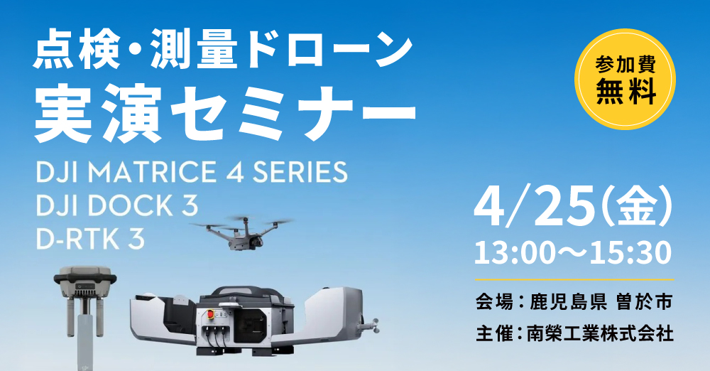 南榮工業株式会社主催 DJIの最新産業機「DJI Dock3」と「DJI Matrice 4」シリーズセミナーを開催します。