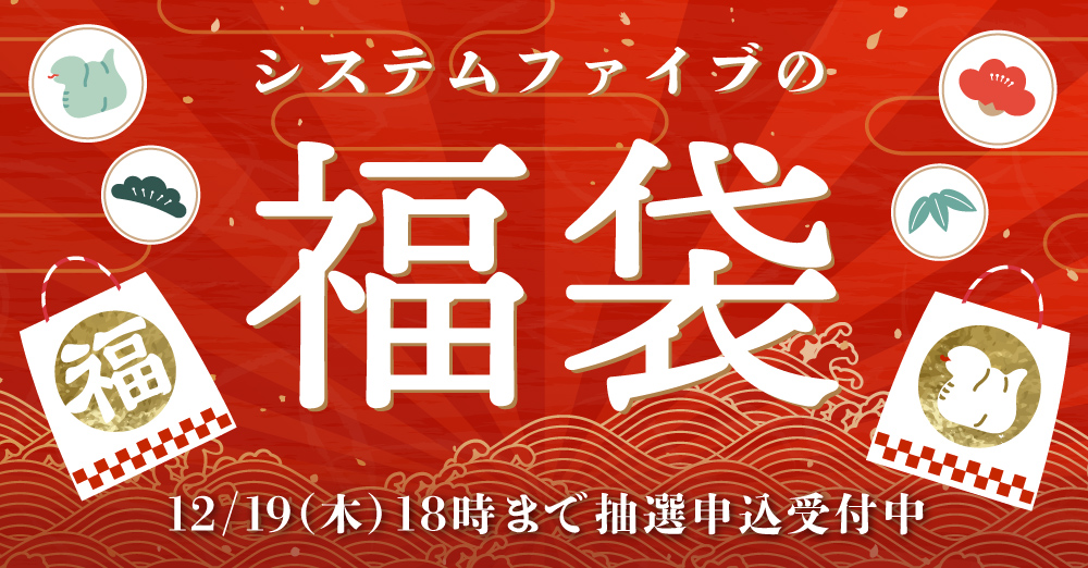 2024/12/13(金)18:00 ~ 2024/12/19(木)18:00まで、開運福袋の抽選申し込みを受け付けます!