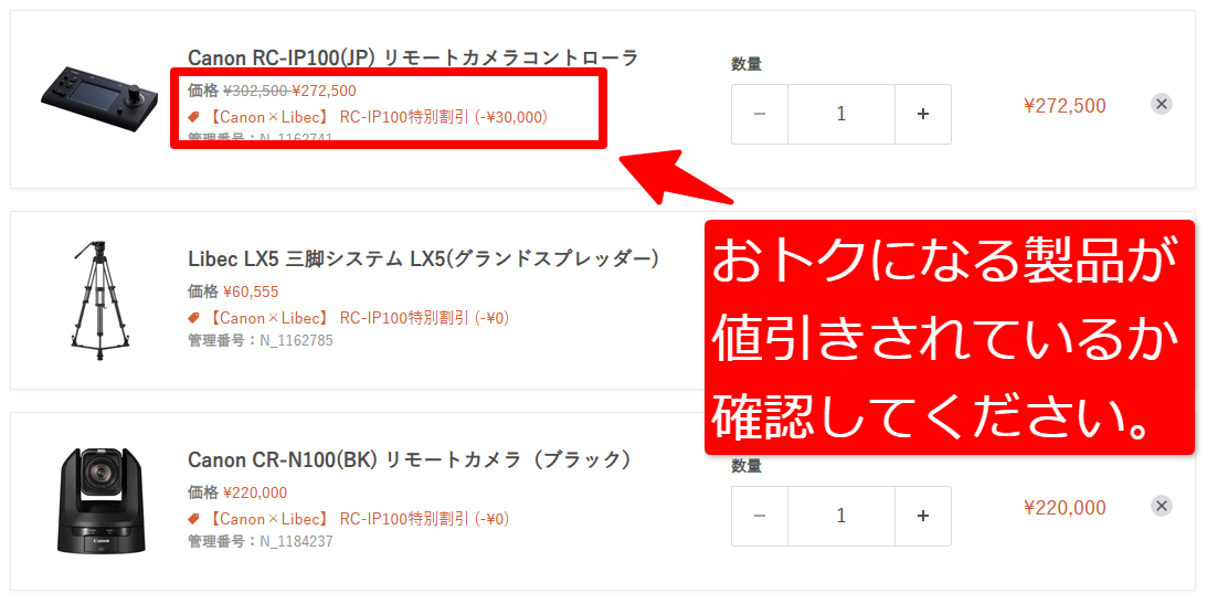 1. おトクになる製品も含め、対象製品を全てカートに入れてください。