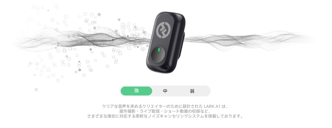 Lark A1は、スマートフォンに接続すればすぐに使えるワイヤレスマイクです。