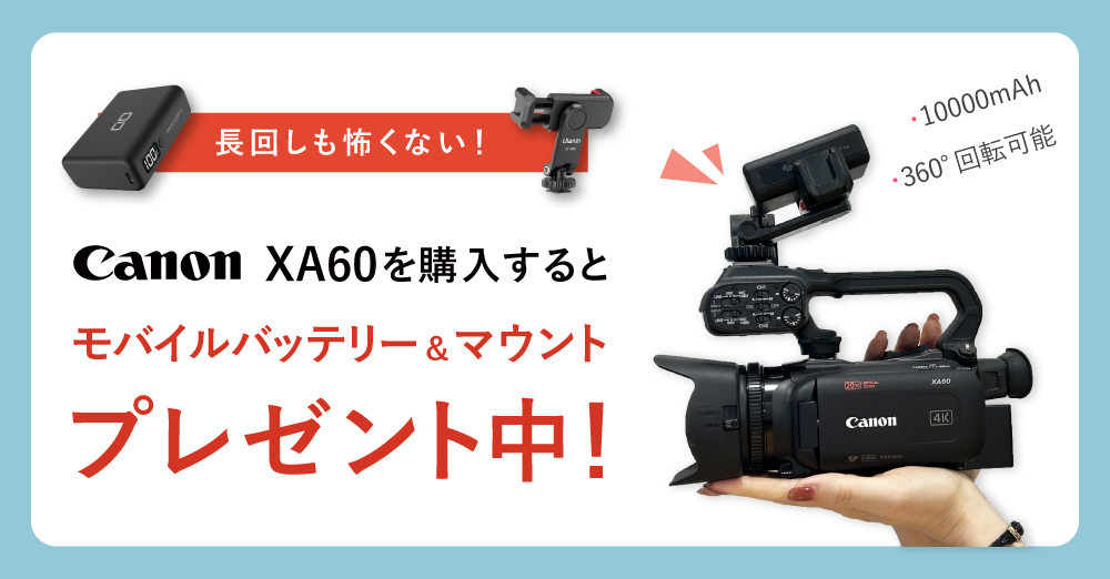 【キャンペーン】キヤノン「XA60」を購入するとモバイルバッテリー&マウントをプレゼント中!