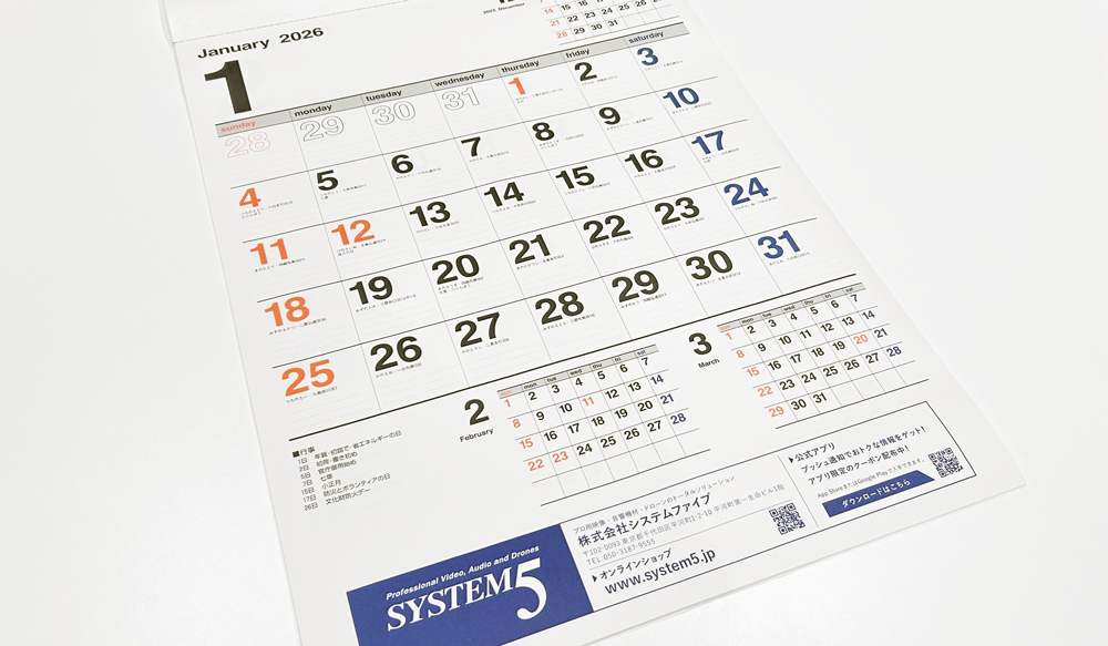 2026年版SYSTEM5壁掛けカレンダーを対象のお客様にもれなくプレゼント!