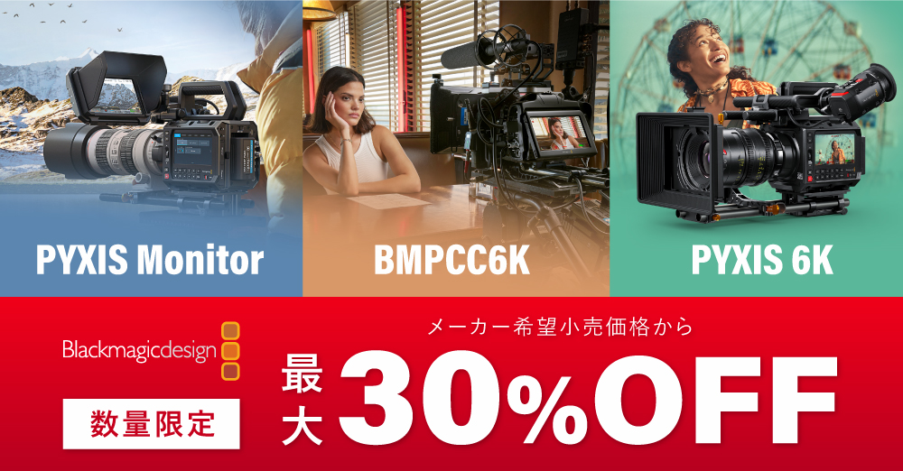 映画・映像制作の現場で選ばれるBlackmagic Designの人気シネマカメラ&アクセサリーが、メーカー希望小売価格から最大30%OFFの特別プライス。