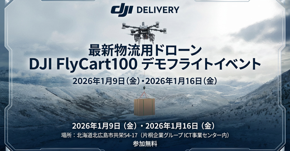 【イベント】最新物流用ドローン「DJI FlyCart 100」デモフライト体験会 in 北海道北広島市 1/9・16開催
