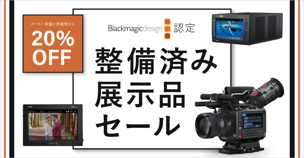 ブラックマジックデザインがInter BEE 2025(2025年11月の幕張メッセ展示会)で展示した機材を、メーカーにて整備し、メーカー希望小売価格から20%OFFの特別価格でご案内いたします。