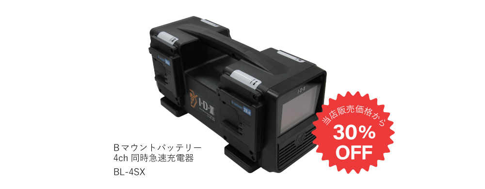 Bマウントバッテリー 4ch同時急速充電器「BL-4SX」を当店販売価格から30%OFFでお求めいただけます。