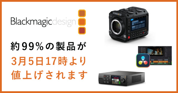 【価格改定】ブラックマジックデザイン製品の約99%が値上げ予定です。(3月5日17時~)