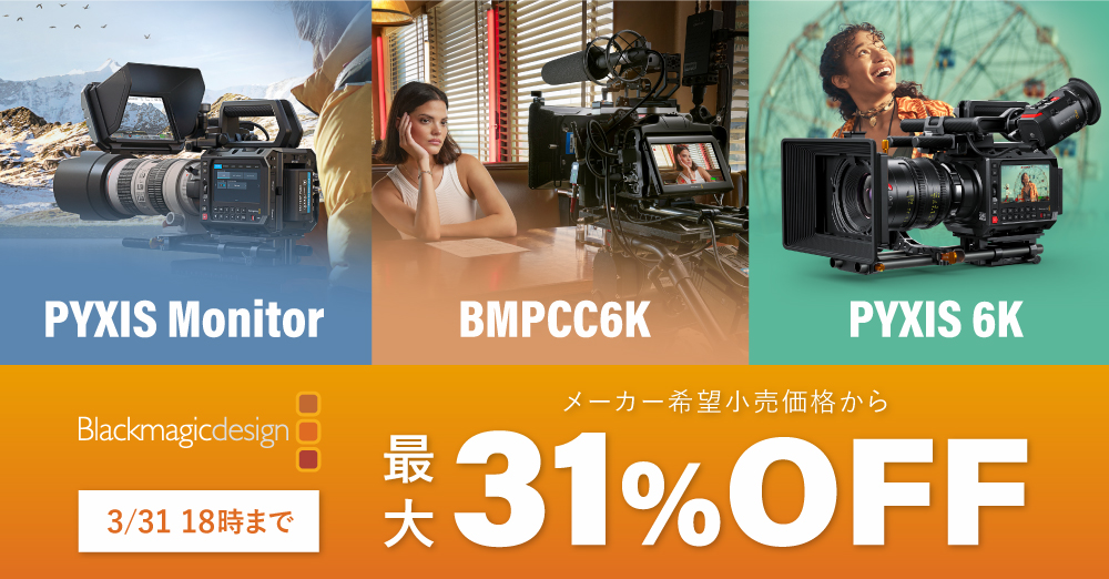 【キャンペーン】「Blackmagic Design 6Kのすすめ」メーカー希望小売価格から最大31%OFF 3/31 18時まで