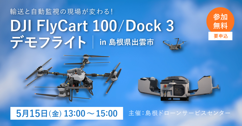 【イベント】DJI FlyCart 100/Dock 3デモフライトイベント in島根県出雲市 5/15(金)開催