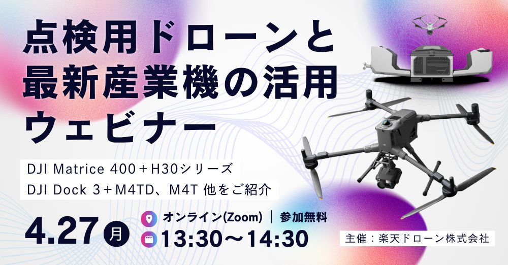 楽天ドローン株式会社主催 「点検用ドローンと最新産業機の活用」ウェビナーを開催いたします。