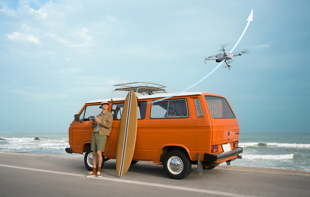 「ぶつけそうで怖い」という初心者の不安を、LiDARがしっかりサポート。いつでも安心して空撮を楽しめる1台です。