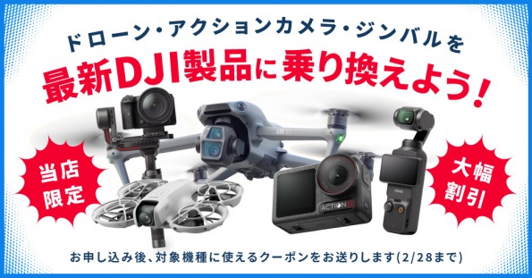 過去キャンペーン情報 記事一覧 2026年1月1日 【アプリ限定】三が日は毎日抽選!運試しクーポン配布中! 2025年12月25日 【セール】Saramonic 年末年始 キャンペーン 1/23 18時まで 期間:1/23まで 2025年12月24日 【福袋2026】コースごとに選べる新春福袋!抽選申し込み受付中! 期間:1/5 9時まで抽選申込受付中 2025年12月24日 【セール】Accsoon 年末年始セール 1/5 10時まで 期間:1/5 10時まで 2025年12月24日 【セール】Deity Microphones 年末年始セール 1/5 10時まで 期間:1/5 10時まで 2025年12月18日 【セール】NANLITE 年末年始セール 1/9 10時まで 期間:1/9 10時まで 2025年12月17日 【キャンペーン】Harlowe「クラシックライトスタンド180」を購入するとサンドバッグプレゼント!1/31まで 期間:なくなり次第終了 2025年12月16日 【セール】Hollyland 4日間限定!冬得セール 12/19 18時まで 期間:12/19 18時まで 2025年12月15日 【セール】Ulanzi セール 1/8 18時まで 期間:1/8 18時まで 2025年12月15日 【セール】Yololiv 年末セール 12/25(木)18時まで 期間:12/25 18時まで 2025年12月12日 【歳末感謝祭】12/12(金)16時~12/25(木) 15時まで(12/15 中古価格改定・ワケあり品追加) 期間:12/25 15時 まで 2025年12月9日 【キャンペーン】キヤノン EOS C50と同時購入するとブラックマジックデザイン製品がおトク!1/30 16時まで 期間:1/30 16時まで 2025年12月4日 【セール】E-image ビデオ三脚「EG06FA2」値下げ&特価!1/31まで 期間:1/31まで 2025年11月28日 【店頭イベント】数量限定!ショールームで対象品を買うとノベルティプレゼント! 期間:なくなり次第終了 2025年11月25日 【数量限定】Blackmagic Design Black Friday 2025 メーカー希望小売価格から最大30%OFF 期間:なくなり次第終了 2025年11月21日 【ブラックフライデーセール】ゼンハイザー&ノイマン製品がおトク! 期間:12/23まで 2025年11月21日 【中古クリアランスセール】中古品が9~75%OFF!1/19まで 期間:1/19まで 2025年11月18日 【特別クーポンプレゼント!】新製品 Osmo Action 6下取りキャンペーン開催中!12/18 18時まで 期間:12/18 18時まで 2025年11月18日 【当店購入者限定】DJI Osmo Action 6を購入してレビュー投稿すると最大3,000ポイントプレゼント!12/18まで 期間:12/18まで 2025年11月14日 【ブラックフライデーセール】HollylandやUlanziなどがおトク!12/5 18時まで 期間:12/5 18時まで 2025年11月5日 【1,500円OFF】DJI Osmo Mobile 8がおトクに!引き取りキャンペーン!12/5まで 期間:12/5まで 2025年10月31日 【終了しました】2026年版SYSTEM5壁掛けカレンダーを対象のお客様にもれなくプレゼント! 期間:なくなり次第終了 2025年10月30日 【11/6・7開催】第2弾 キヤノン 新製品「EOS C50」体験会 in東京・半蔵門 期間:11/6・7開催 2025年10月2日 【キャンペーン】キヤノン「XA60」を購入するとモバイルバッテリー&マウントをプレゼント中! 期間:なくなり次第終了 2025年9月23日 【当店購入者限定】Osmo Nanoを購入してレビュー投稿すると最大3,000ポイントプレゼント!12/23まで 期間:12/23まで 2025年8月25日 【プレゼント】ブラックマジックデザイン 特別クーポン配布中!オリジナルクリアファイル&カタログもセット! 期間:10/10まで 2025年7月14日 【キャンペーン】E-IMAGE イントレ「PST-10」を買うとカメラバッグプレゼント! 期間:なくなり次第終了 2025年2月4日 【終了しました】DJI製品+アクセサリーがおトクな「DJI福袋」販売中! 期間:なくなり次第終了 2025年2月3日 【大幅割引】DJIドローン・アクションカメラ・ジンバルの乗り換えがおトク!引き取りキャンペーン!2/28まで 期間:2/28まで 2025年1月1日 終了しました:【新春特別企画】メーカー&ジャンル別「10万円福袋」1月6日正午まで(オンライン限定) 期間:1/6 正午まで 2025年1月1日 【新春特別企画】ソニー、キヤノン&Libecのカメラセットがおトク!1月6日正午まで(オンライン限定) 期間:1/6 正午まで 2024年12月17日 【歳末感謝祭】12/17(火)15時~12/27(金) 正午まで 期間:12/27正午まで 2024年12月11日 【数量限定】運試し!2025年開運福袋 12/19(木)18時まで抽選申込受付(終了しました) 期間:12/19 18時まで 2024年12月4日 【DJI Osmo Action 4/5 Proが2,000円OFF】アクションカメラ引き取りキャンペーン!12/18まで 期間:12/18まで 2024年1月1日 【新春セール開催中】ソニー、キヤノン、パナソニックのセットがおトク!1/9(火)17時まで 期間:1/9 17時まで 2023年12月15日 【数量限定】運試し!開運福袋 抽選申込受付中! 期間:なくなり次第終了 1 2 ▸